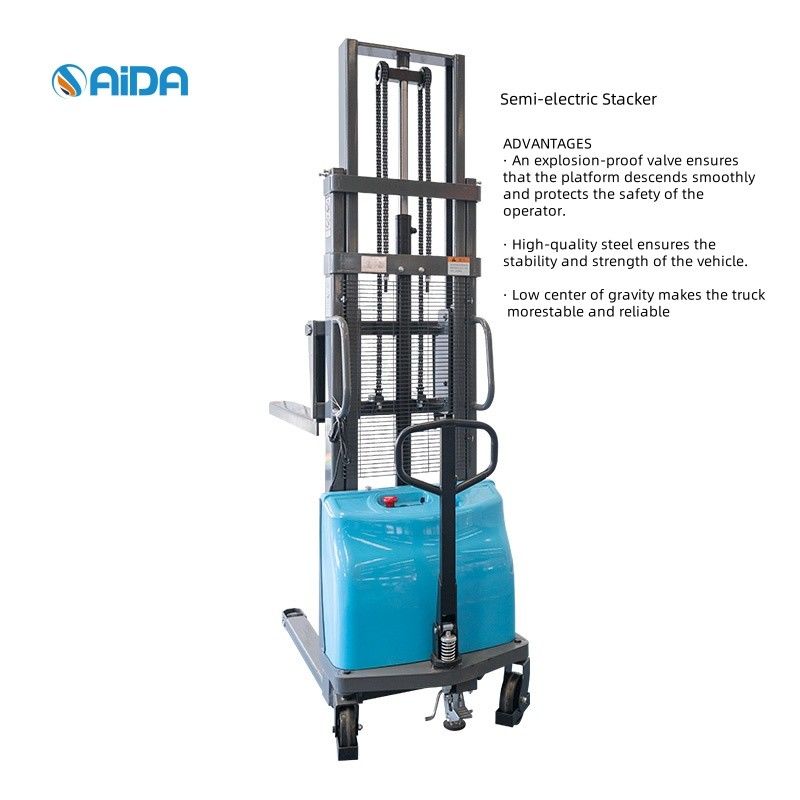 استاکر نيمه الکتريکي پاليت که براي حمل و نقل کالا و محموله در لوژستيک، انبار، فروشگاه هاي عمده فروشي و خرده فروشي، ذخاير، توليد خودرو، کارخانه ها و غيره استفاده مي شود.